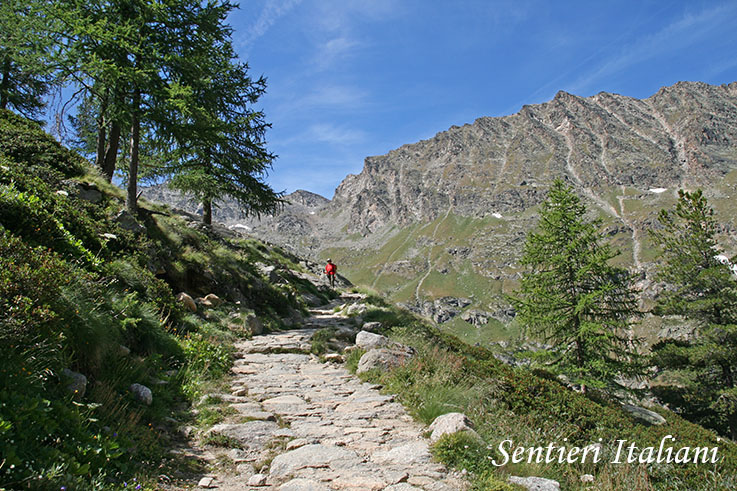 | Da Aosta si risale la valle in direzione Courmayeur fino a Villeneuve dove si prende la strada che sale a Introd e che poi entra in Valsavarenche. Si prosegue lungo la valle superando Eaux Rousses e giungendo al parcheggio di Pravieux da dove parte la mulattiera per il Rifugio Chabod. Se ci si organizza con due auto conviene lasciare la prima auto qui e proseguire con la seconda auto fino a giungere a Pont, al termine della strada, dove vi è un ampio parcheggio. Ora, a piedi, si supera il Torrente Savara seguendo le evidenti frecce e le segnalazioni per il Rifugio Vittorio Emanuele II. La mulattiera, dopo un tratto lungo il fondovalle, ben presto inizia a salire con ampi tornanti prendendo quota lentamente. |